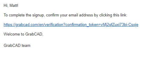 - Check your email, open the email with the subject 'Welcome to GrabCAD', and click the link provided to confirm your account.