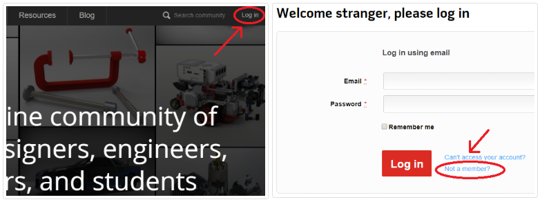 - Head to the GrabCAD homepage, click "Log In" in the top-right, and then "Not a Member?" next to the "Log In" button. Or you can just click here!