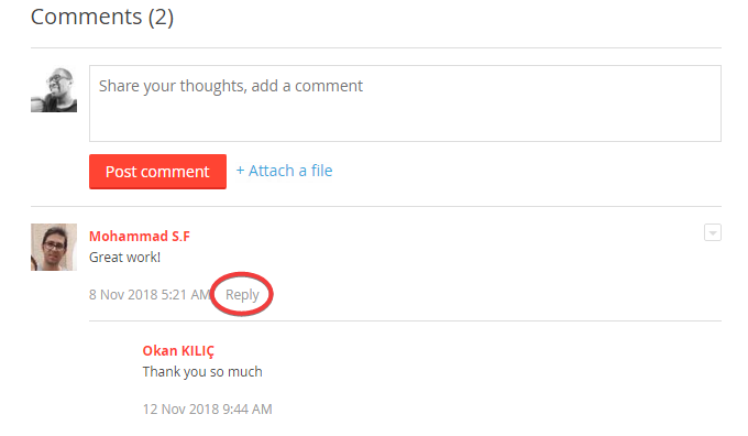 To help fuel the discussion, renderings and other files can now be attached to comments. Threaded comments allow the conversation to continue naturally by simply clicking ‘Reply’