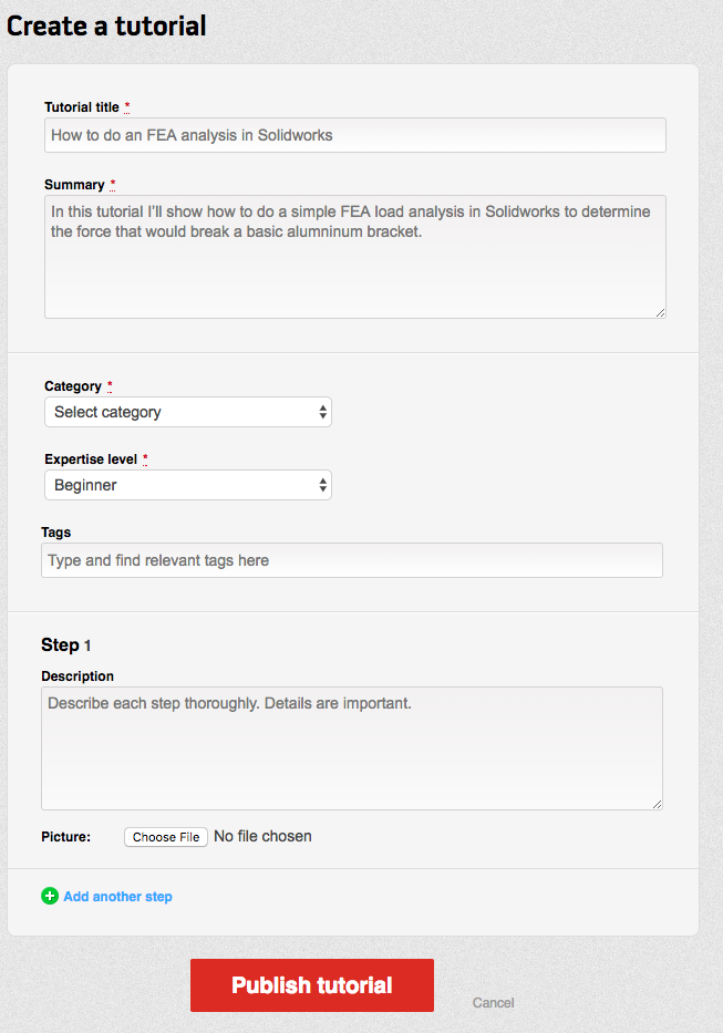 - Fill in the fields as detailed as possible to represent what the member can expect to learn, the difficulty of the tutorials, the category it best fits in.