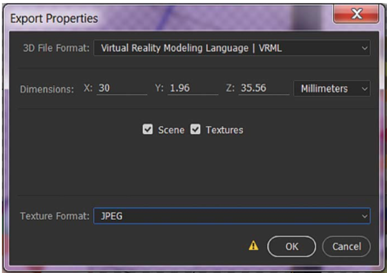 Step C: Select .VRML as the 3D file format, and JPEG, PNG or BMP as your texture format.