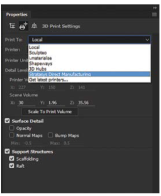 If you do not have access to a Stratasys Printer, you can choose to print with Stratasys Direct Manufacturing Printing Service Provider. In the 3D printing Settings, select “Stratasys Direct Manufacturing.”